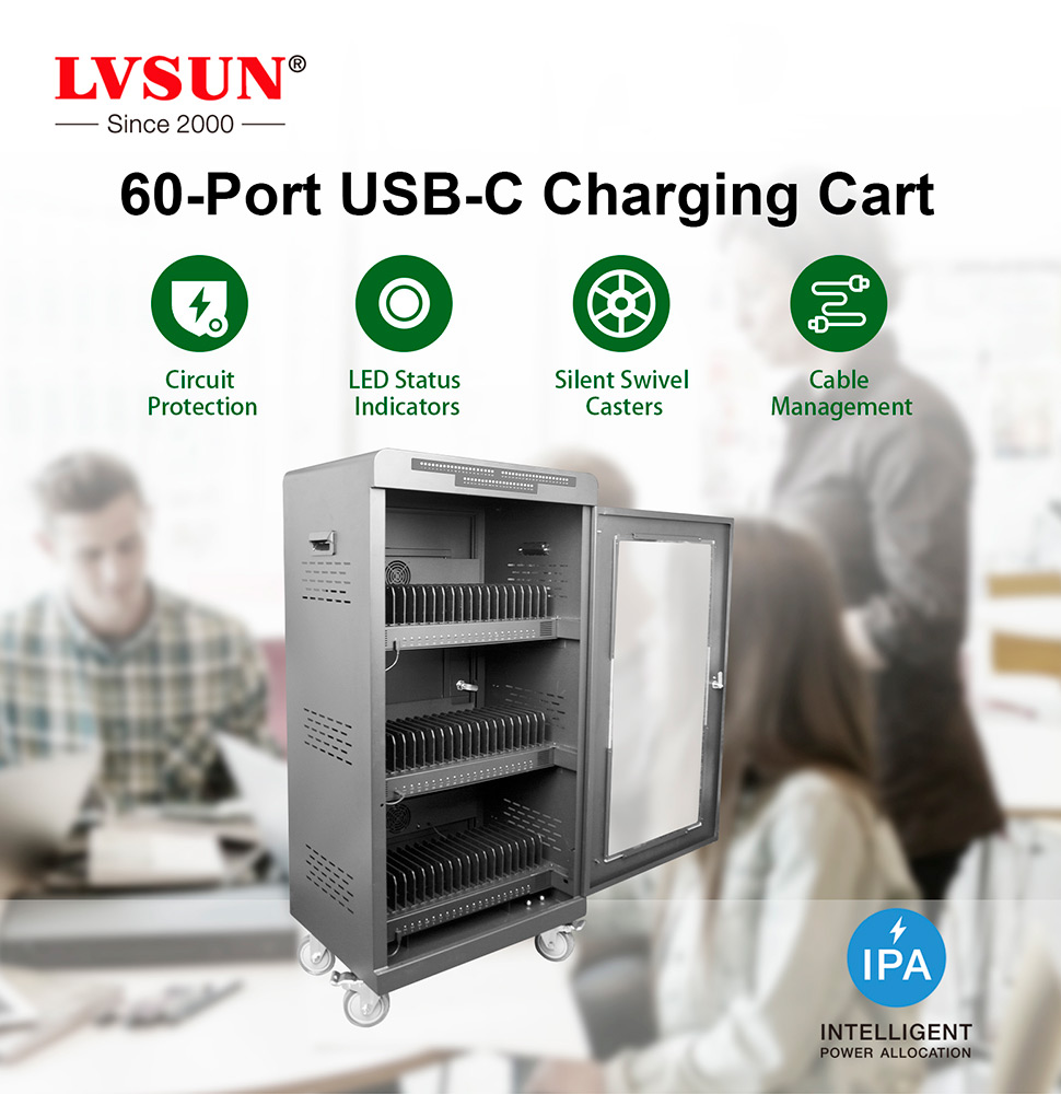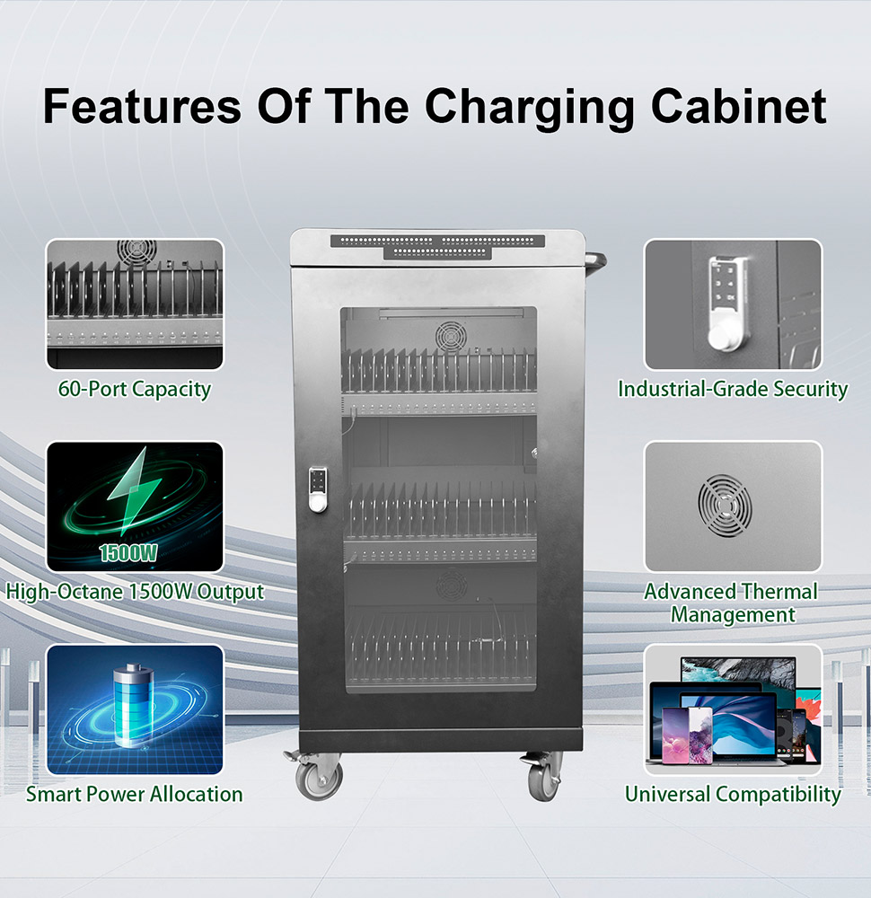 The 1500W 60-Port USB-C Charging Cart is a professional-grade solution designed to simplify the logistics of charging, storing, and securing mobile devices. Moving beyond traditional power strips, this cart provides a centralized, mobile ecosystem for your hardware. Whether you are managing a classroom of iPads or a fleet of corporate tablets, our charging cart ensures your technology is always ready, organized, and protected.