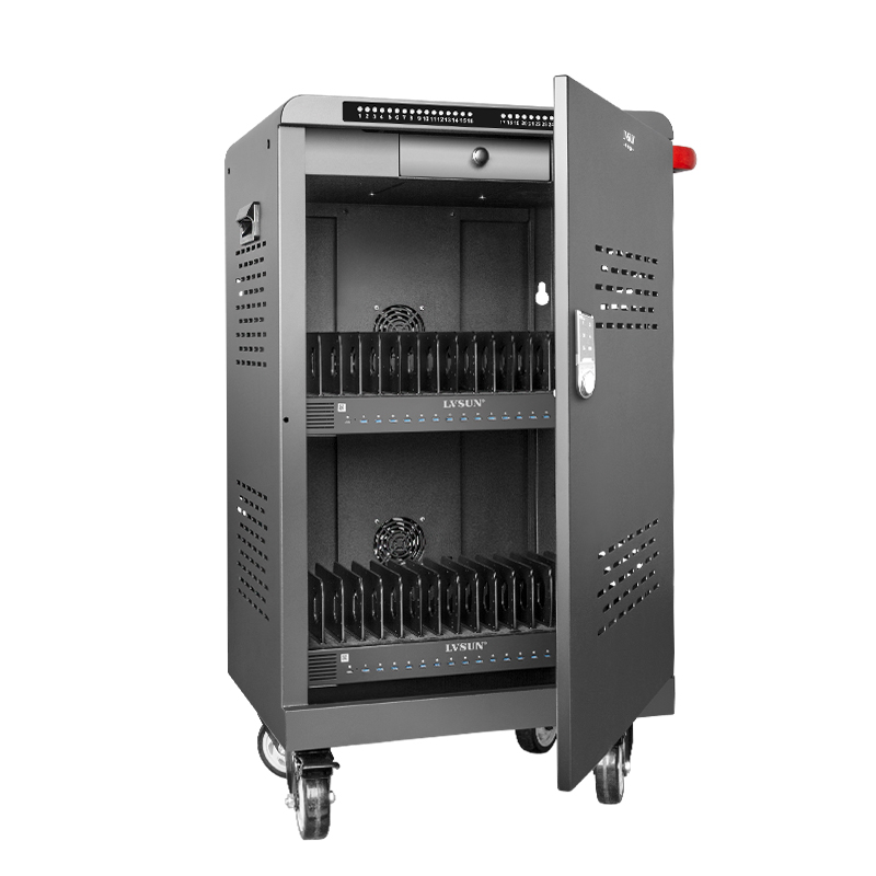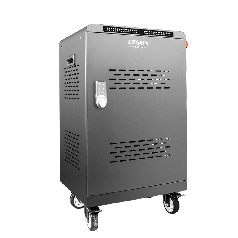 Der 32-Fach-Ladewagen ist eine effiziente und praktische Ladelösung für Bildungseinrichtungen und Unternehmen. Es kann bis zu 32 Geräte gleichzeitig laden und stellt so sicher, dass Ihre elektronischen Geräte immer mit Strom versorgt und einsatzbereit sind. Ausgestattet mit einem intelligenten Managementsystem mit der „innovatecharger“-App erkennt und optimiert es automatisch die Ladeeffizienz, um die Lebensdauer des Geräts zu verlängern. Mit einem sicheren Verriegelungsmechanismus und stabilen Rädern bietet der Wagen einfache Mobilität und sichere Aufbewahrung Ihrer Geräte. Ob im Klassenzimmer oder im Büro, der USB-C PD3.0-Ladewagen mit 32 Anschlüssen ist Ihre ideale Wahl für nahtlose Ladelösungen.